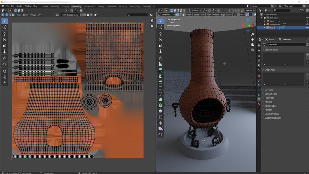 Ceramic fire pit. Subdivision model with background. Suitable for rendering. All textures 4k.